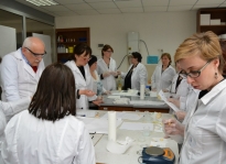 The trainings for module writers under the project of professional development of teachers and school principals ended with the practical experiments. The training participants put on white lab gowns and got involved in a school chemistry experiment.
