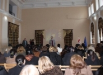 The Minister, Dimitri Shashkini, the Head of National Center for Teacher Professional Development, Gia Mamulashvili, the Mayor of Kutaisi, Giorgi Tevdoradze attended a teacher training in Kutaisi Public school №1.